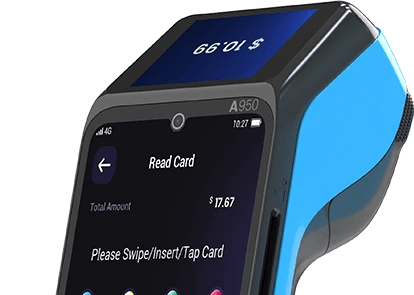 The PAX A950 is a new model, with a Customer Facing Display. It supports a wide range of advanced connectivity options, as well as NFC contactless, electronic signature capture and massive amounts of memory to enable exceptionally fast processing of payments and applications.